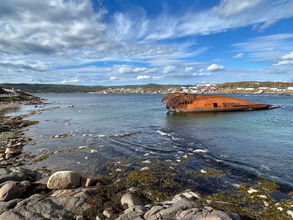 After some grim weather in Newfoundland, the sun came out in Labrador. On a pretty day, this UNESCO world heritage site is a particularly beautiful spot with lingonberries or partridge berries growing on the rocky island. On a bad day, I imagine it is inhospitable, as the crew of the pictured 1965 wreck knew too well. While walking around, I spotted a minke whale feeding in the harbor, splashing and putting on a show. I’m glad whaling is almost entirely a thing of the past.