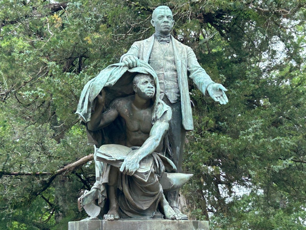 Like many emancipated slaves, Booker had no surname. When he showed up at school, he just said his last name was Washington. After walking across much of Virginia to go to school near Hampton Roads, he became a teacher at Hampton University, before being hired to run the Tuskegee Institute, now University. Ever hard-working, practical and focused on improvement, his students developed many valuable skills to support their families, including brick making. His students built his impressive mansion, The Oaks, across the street from Tuskegee University, using the design by our nation’s first African American architect, Robert Taylor, who trained at MIT as its first black student. Booker T., ever persuasive, recruited Taylor, who designed many buildings that are now part of both this national historic site and the university.