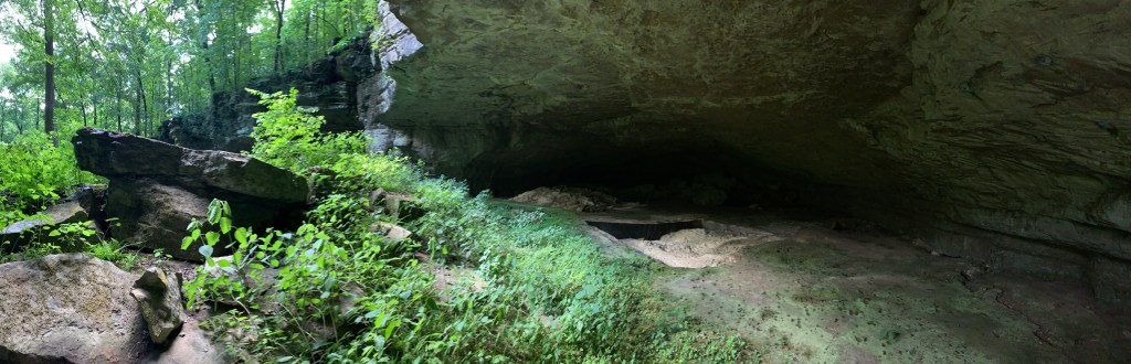 Local archaeologists started digging here under the overhang, but soon the Smithsonian took over, finding evidence of over ten thousand years of continuous use by Native Americans. There’s a particular style of stone spear point found here that old and named after the site. There’s a also a nature trail along the creek that flows from underground, with birds and lush vegetation.