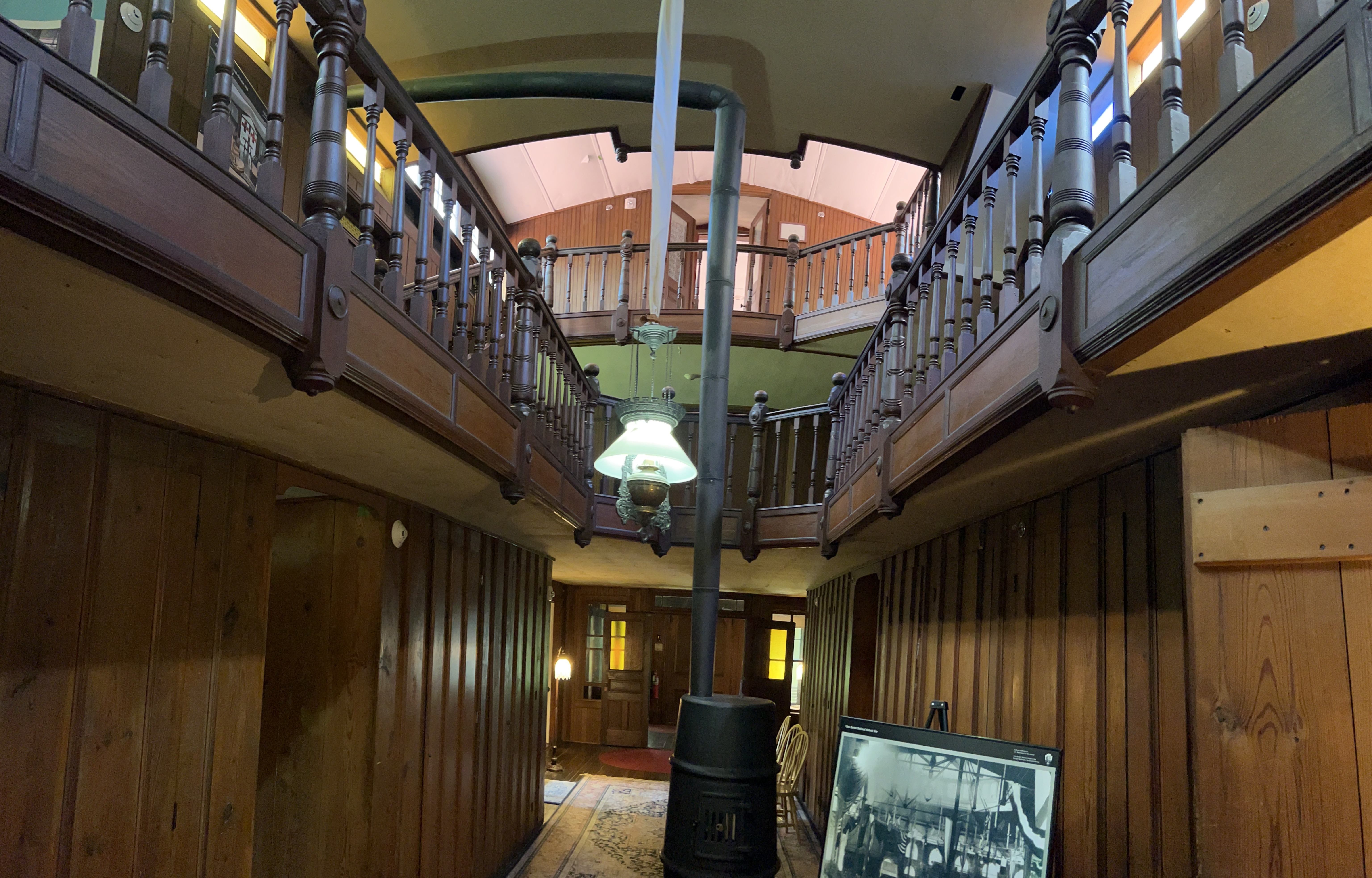 The Maryland home was donated by wealthy business partners who wanted to attract people to their lands along the Potomac, and it was built to meet Clara’s specifications. She was all business. The lamp is hung by bandage cloth, and the walls are all supply closets with blankets, food and emergency items. The design is similar to the early Red Cross disaster buildings first used at Johnstown. The top floor windows have Red Cross images so that travelers can see it from the road at night. And the staff had both offices and rooms to live and work. The home is currently empty in preparation for a major restoration, but there are large photos to see what each room looked like furnished.