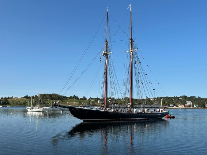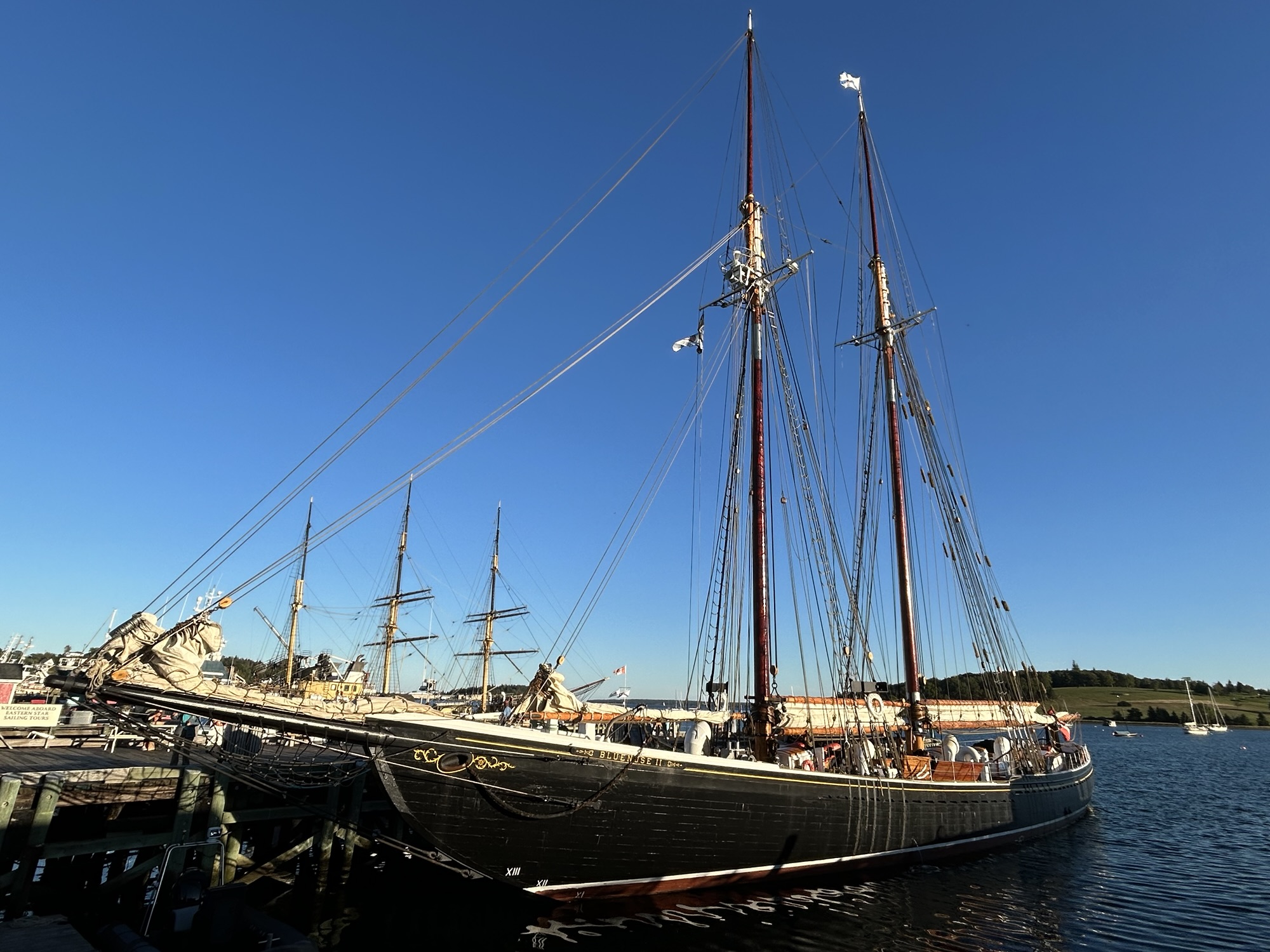 UNESCO recognized Lunenburg Nova Scotia for being a well-preserved example of a British planned town, including many lovely, colorful historic buildings. I think that’s missing the point. The town was a success due to its natural harbor, grew quickly and earned its fine buildings by fishing and trade during the age of sail. Plenty of other towns have grid streets and colorful Victorian architecture. But the beauty of the place is its harbor, where two large sailing ships were docked when I arrived. One, the Picton Castle, is a training ship (in background above), and the other is the Bluenose II (foreground), a replica of one of the fastest fishing sailboats in the world. The Bluenose won 5 consecutive world fishing ship races during the 1920s and 30s, before being lost in the Caribbean in the 40s.