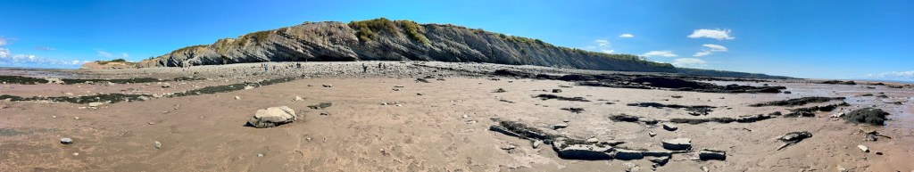 This UNESCO World Heritage Site is on the Nova Scotia side of the Bay of Fundy, and it is a remarkable area for fossils. The high cliffs in the background have tilted layers, so that if you walk north (left) you go back in time and south forward. I took the tour at low tide, because the high tide rises 30 feet over where I took the photo above. The tidal erosion is harsh, so that we heard and saw several small rockfalls in 90 minutes. As a result, new fossils are constantly being revealed.