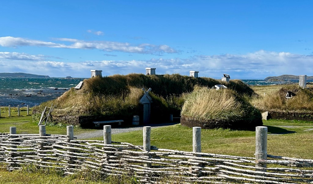 L’Anse aux Meadows, or Meadows Cove, is now a UNESCO world heritage site with living history interpreters, and the reconstructed longhouse village is an excellent place to visit, photograph and ask questions. There is a statue of Leif Ericsson at the small harbor and various Viking themed tourist attractions nearby.