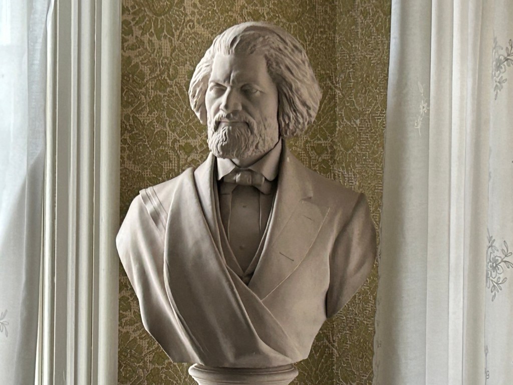 [Update] On my third visit, the site was open after renovations, and the tour allows unique insights into his life. Through hard work, intellect and moral courage, Frederick Douglass became renowned author, public speaker, publisher, adviser to many presidents, US Marshal of DC, diplomat and civil rights leader. He purchased his home on one of the highest hills in our nation’s capital, with a grand view of the Washington Monument. The neighborhood is now historic, and the surrounding area is predominantly African American, some descended from the Civil War refugees who lived in camps near the city for protection. Douglass was cognizant of the lack of African American role models when he was young, so he consciously presented himself well, and gifts like his bust above were meant to inspire another generation of leaders.
